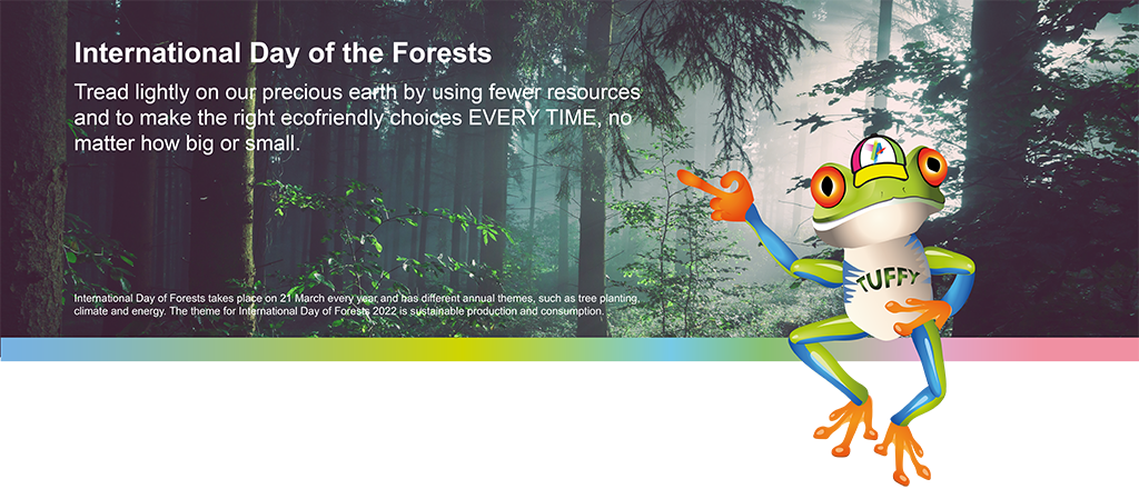 Several years ago, our eco-warrior “Tuffy” was introduced to run various internal educational campaigns. Tuffy is quite a character and it is appropriate that Amazon Colours acknowledges him on INTERNATIONAL DAY OF FORESTS.